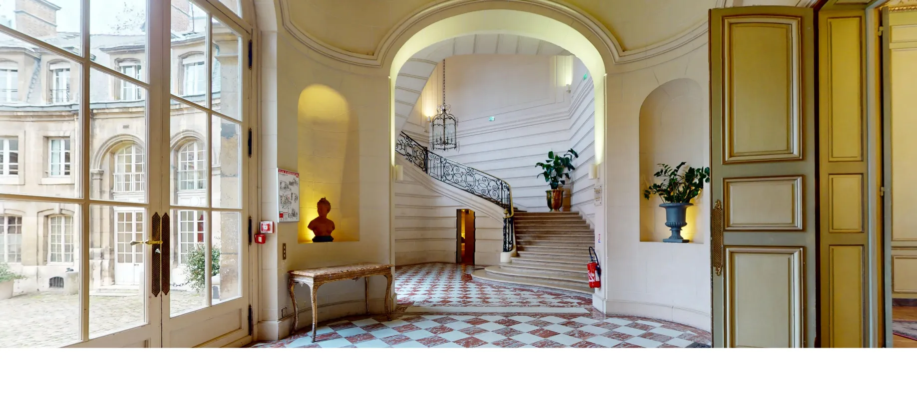 Explorez librement les espaces, découvrez les détails architecturaux et laissez-vous guider à travers l’atmosphère unique de nos deux hôtels particuliers, comme si vous y étiez.