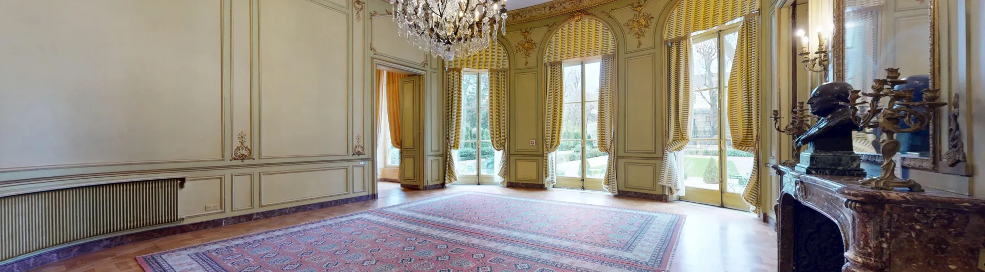 Salon de 44 m2 intégré dans l’enfilade des salons Ambassadeurs I situé au rez de chaussée avec accès aux jardins par les salons contigus.